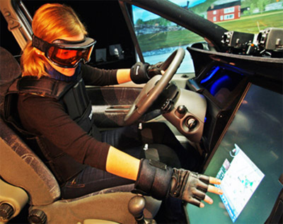 Einsatz des Alters-simulationsanzug des Fraunhofer IAO in Stuttgart während der Fahrtsimulation